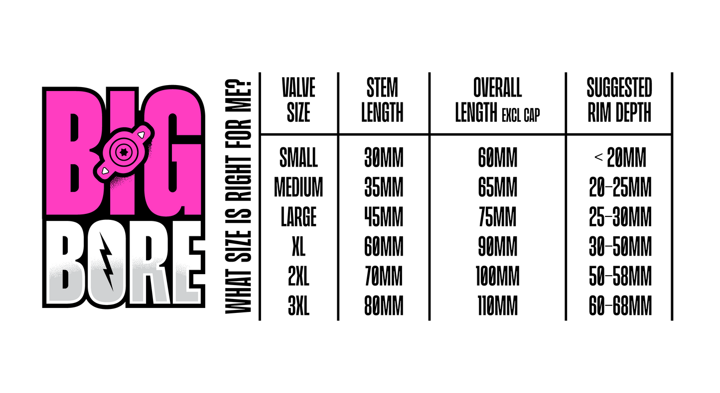 Our Big Bore Lite offers up to 230% higher air flow than traditional Presta valves thanks to the straight through bore design.